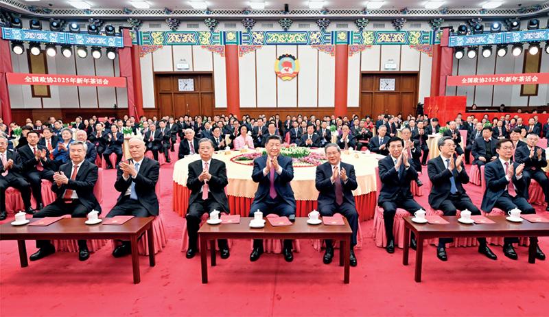 2024年12月31日,全國(guó)政協(xié)在北京舉行新年茶話(huà)會(huì)。黨和國(guó)家領(lǐng)導(dǎo)人習(xí)近平、李強(qiáng)、趙樂(lè)際、王滬寧、蔡奇、丁薛祥、李希、韓正出席茶話(huà)會(huì)并觀看演出。 新華社記者 謝環(huán)馳/攝