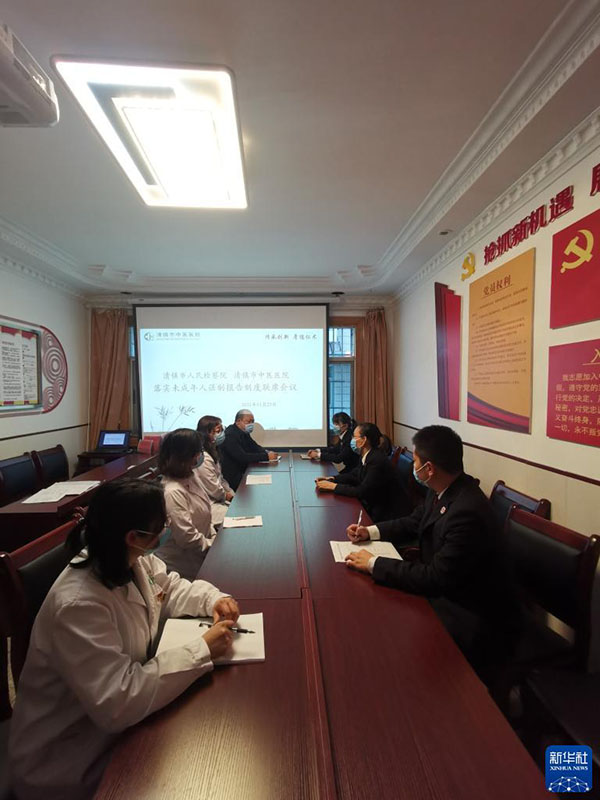 12月16日,貴州省清鎮(zhèn)市檢察機關(guān)與醫(yī)療機構(gòu)召開聯(lián)席會議,研究推進(jìn)醫(yī)療機構(gòu)落實侵害未成年人案件強制報告制度。新華社發(fā)(杜遠(yuǎn)敏 攝)