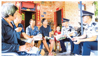 圖為云南紅河新街邊境派出所民警到群眾家中走訪,開展普法宣傳。