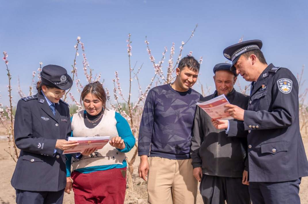 近日,新疆葉城縣公安局以新疆維吾爾自治區(qū)第二十二個(gè)“憲法法律宣傳月”為契機(jī),將法治宣傳陣地“搬”至綠意盎然、鳥語(yǔ)花香的田間地頭,民警采用群眾喜聞樂(lè)見(jiàn)的形式普及法律知識(shí),在春風(fēng)化雨間滋養(yǎng)群眾法治觀念,著力提升廣大群眾尊法學(xué)法守法用法的意識(shí),全力營(yíng)造良好的法治社會(huì)環(huán)境。