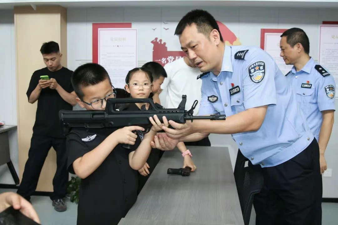 警務(wù)裝備展示環(huán)節(jié)更是讓孩子們大開眼界。警用無人機(jī)、AI眼鏡及各類警用槍支等平時只能在電視里看到的裝備一一呈現(xiàn)在眼前。