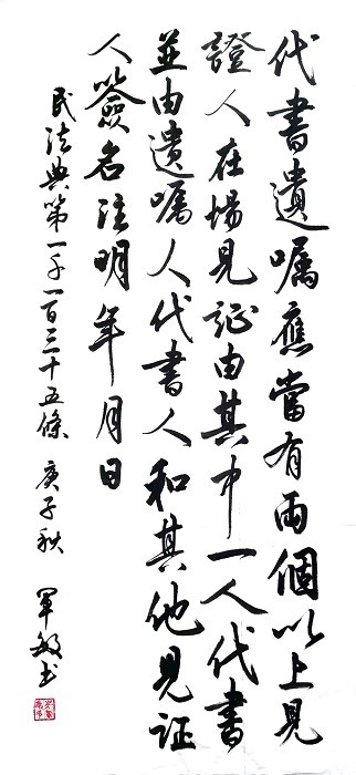 民法典第一千一百三十五條 代書遺囑應(yīng)當(dāng)有兩個以上見證人在場見證,由其中一人代書,并由遺囑人、代書人和其他見證人簽名,注明年、月、日。