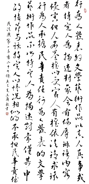 民法典第一千零二十七條 行為人發(fā)表的文學(xué)、藝術(shù)作品以真人真事或者特定人為描述對(duì)象,含有侮辱、誹謗內(nèi)容,侵害他人名譽(yù)權(quán)的,受害人有權(quán)依法請(qǐng)求該行為人承擔(dān)民事責(zé)任。