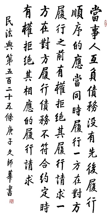 民法典第五百二十五條 當(dāng)事人互負(fù)債務(wù),沒有先后履行順序的,應(yīng)當(dāng)同時履行。一方在對方履行之前有權(quán)拒絕其履行請求。一方在對方履行債務(wù)不符合約定時,有權(quán)拒絕其相應(yīng)的履行請求。