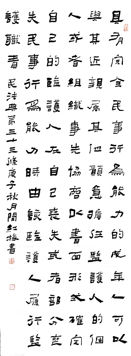 書法作品入展中國“祭侄文稿杯”書法篆刻展優(yōu)秀獎(jiǎng)(最高獎(jiǎng))、中國第四屆西部書法篆刻展等。