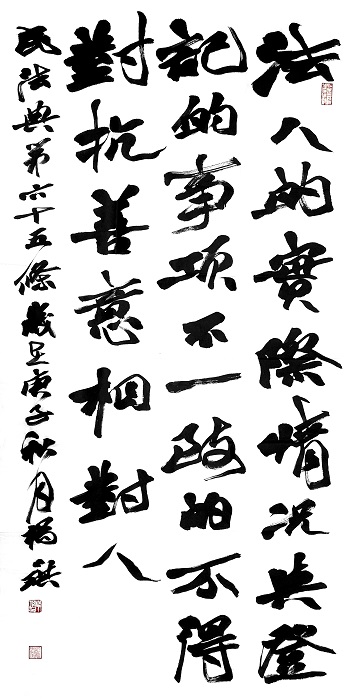 “書·法”活動旨在為創(chuàng)新法治宣傳教育,多開一點腦洞、多花一點心思、多出一點力量、多做一點貢獻,引領(lǐng)和推動更多的人拿起筆來學(xué)法、寫法,在不斷“書·法”過程中,提升自身的法治素養(yǎng),在全社會弘揚法治精神。