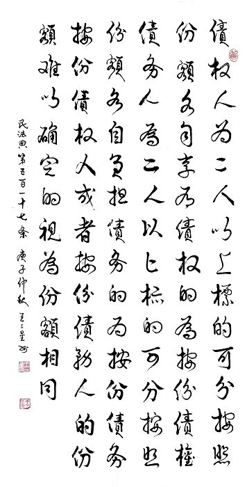 民法典第五百一十七條 債權人為二人以上,標的可分,按照份額各自享有債權的,為按份債權;債務人為二人以上,標的可分,按照份額各自負擔債務的,為按份債務。