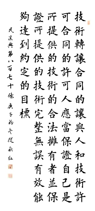 民法典第八百七十條 技術(shù)轉(zhuǎn)讓合同的讓與人和技術(shù)許可合同的許可人應(yīng)當保證自己是所提供的技術(shù)的合法擁有者,并保證所提供的技術(shù)完整、無誤、有效,能夠達到約定的目標。