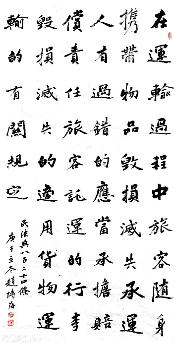 民法典第八百二十四條 在運輸過程中旅客隨身攜帶物品毀損、滅失,承運人有過錯的,應當承擔賠償責任。