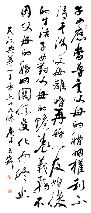 民法典第一千零六十九條 子女應(yīng)當(dāng)尊重父母的婚姻權(quán)利,不得干涉父母離婚、再婚以及婚后的生活。子女對父母的贍養(yǎng)義務(wù),不因父母的婚姻關(guān)系變化而終止。
