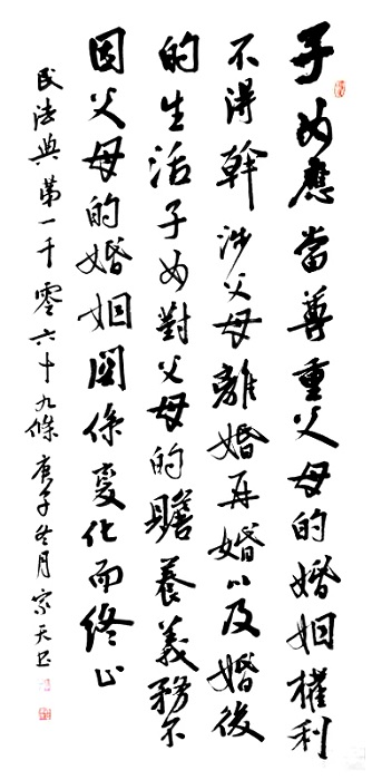 民法典第一千零六十九條 子女應當尊重父母的婚姻權利,不得干涉父母離婚、再婚以及婚后的生活。子女對父母的贍養(yǎng)義務,不因父母的婚姻關系變化而終止。