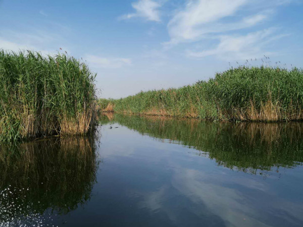 離岸登船,再入蘆葦蕩,已是夕陽(yáng)西下,船頭的浪花驚起幾只水鳥(niǎo),姿態(tài)優(yōu)美地飛向淀泊深處。密密的葦葉在晚風(fēng)中簌簌作響,層層延展開(kāi)去,水天相接之處,彩霞滿天,畫(huà)面祥和唯美。