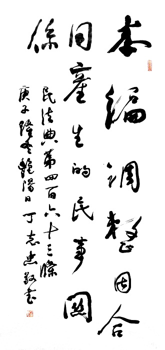 作品入展首屆中國書法蘭亭展、首屆“杏花村杯”全國電視書法大賽等,獲遼寧省書法篆刻展書法金獎。出版《丁志忠古稀書法集》等。