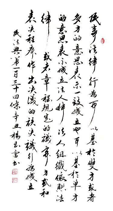 “書·法”活動(dòng)以書寫《中華人民共和國民法典》法條開筆,未來將對準(zhǔn)更多的法律。