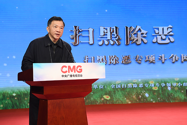 3月23日,“掃黑除惡 國泰民安——掃黑除惡專項斗爭網(wǎng)上展覽館”正式上線。中央政法委秘書長、全國掃黑辦主任陳一新,中宣部副部長、中央廣播電視總臺臺長兼總編輯慎海雄出席上線活動并致辭。