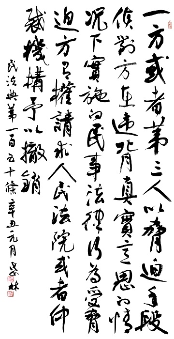 “書·法”活動以書寫《中華人民共和國民法典》法條開筆,未來將對準(zhǔn)更多的法律。