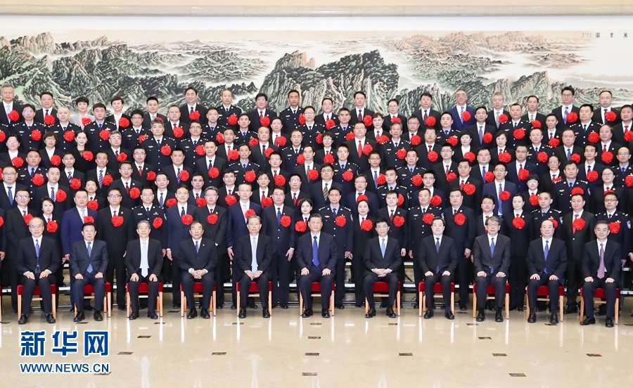 3月29日,黨和國家領(lǐng)導(dǎo)人習(xí)近平、王滬寧、趙樂際等在北京會(huì)見全國掃黑除惡專項(xiàng)斗爭總結(jié)表彰大會(huì)代表。 新華社記者 饒愛民 攝