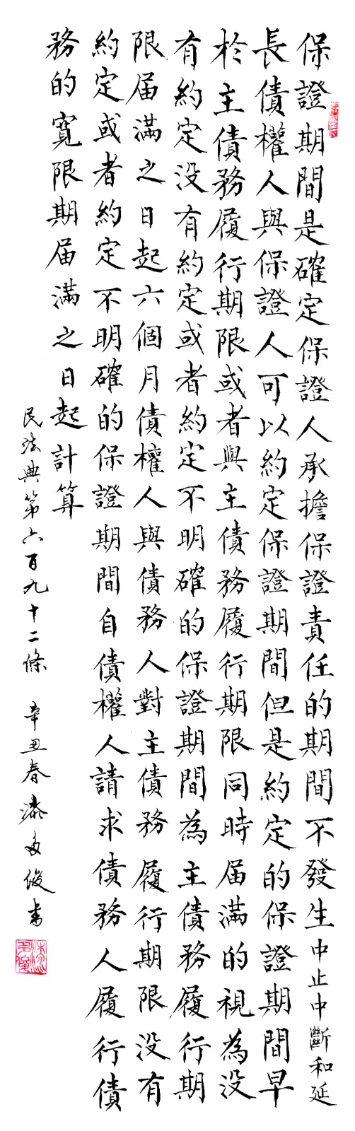 民法典第六百九十二條 保證期間是確定保證人承擔(dān)保證責(zé)任的期間,不發(fā)生中止、中斷和延長。