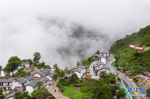 2020年6月30日,一輛客運(yùn)面包車(chē)行駛在四川涼山州布拖縣阿布洛哈村新完工的村道上(無(wú)人機(jī)照片)。新華社記者 江宏景 攝