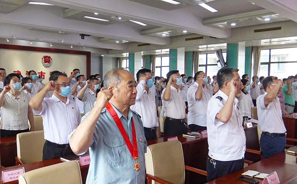 6月24日下午,武漢市司法局舉行慶祝中國共產(chǎn)黨成立100周年暨“七一”表彰大會。在老黨員帶領(lǐng)下,新黨員代表進行入黨宣誓,“兩優(yōu)一先”代表及參會人員重溫入黨誓詞。