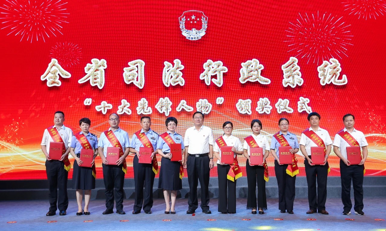▲江西省政府副省長、省公安廳廳長秦義為全省司法行政系統(tǒng)”十大先鋒人物“頒獎(jiǎng)