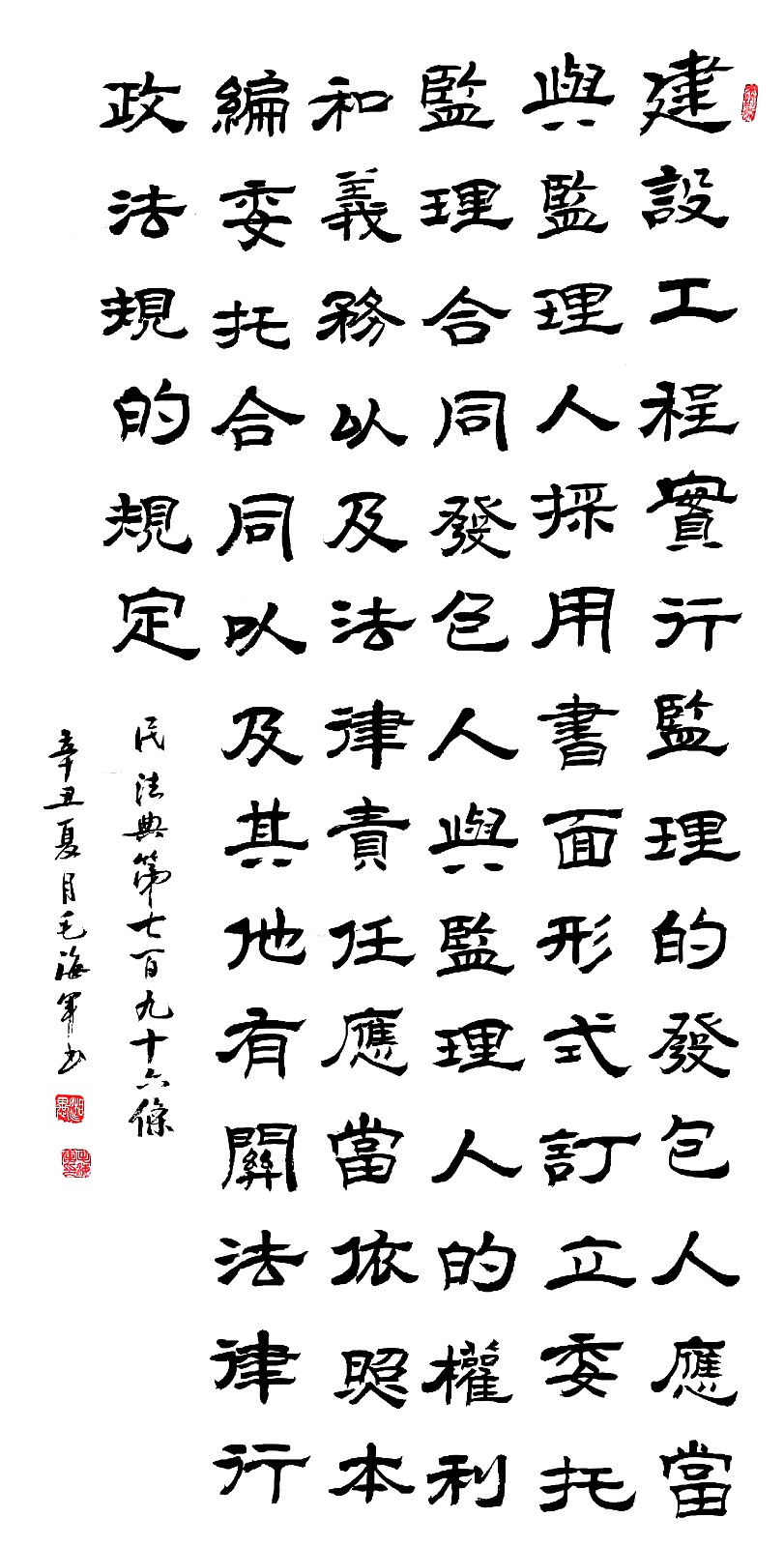 民法典第七百九十六條 建設(shè)工程實行監(jiān)理的,發(fā)包人應(yīng)當(dāng)與監(jiān)理人采用書面形式訂立委托監(jiān)理合同。發(fā)包人與監(jiān)理人的權(quán)利和義務(wù)以及法律責(zé)任,應(yīng)當(dāng)依照本編委托合同以及其他有關(guān)法律、行政法規(guī)的規(guī)定。