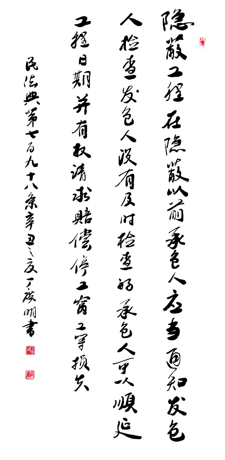 民法典第七百九十八條 隱蔽工程在隱蔽以前,承包人應(yīng)當通知發(fā)包人檢查。發(fā)包人沒有及時檢查的,承包人可以順延工程日期,并有權(quán)請求賠償停工、窩工等損失。