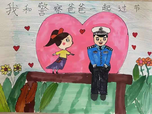 圖為父親節(jié)前夕,邵廣軍小女兒為爸爸精心準(zhǔn)備的父親節(jié)禮物——她畫的“警察爸爸”