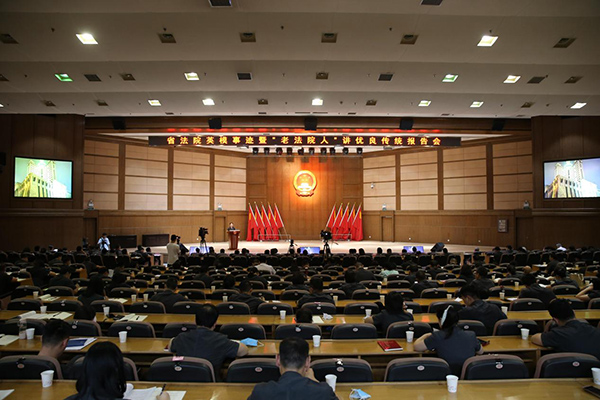 報告會還邀請了“老法院人”代表吳政祥講優(yōu)良傳統(tǒng)。吳政祥以生動的故事、質(zhì)樸的話語講述了他在湖南省法院審判一線不忘初心、牢記使命的奮斗歷程。他勉勵青年干警要樹立遠(yuǎn)大理想和抱負(fù),練就健康體魄,珍愛自己的職業(yè)、榮譽和家庭,珍惜國家和人民賦予的審判執(zhí)行權(quán)力,為湖南法院審判執(zhí)行事業(yè)高質(zhì)量發(fā)展貢獻(xiàn)力量,成為忠誠干凈擔(dān)當(dāng)?shù)暮戏ㄔ鸿F軍中的一員。