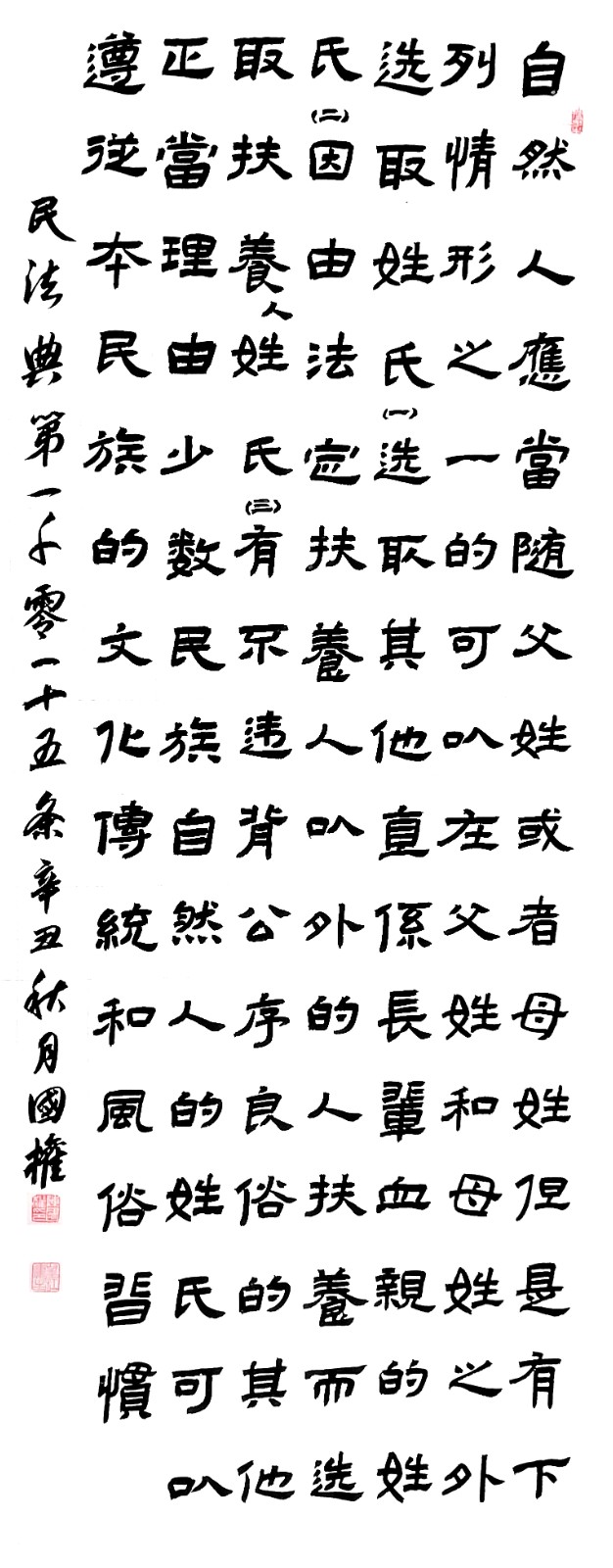 民法典第一千零一十五條 自然人應(yīng)當(dāng)隨父姓或者母姓,但是有下列情形之一的,可以在父姓和母姓之外選取姓氏: