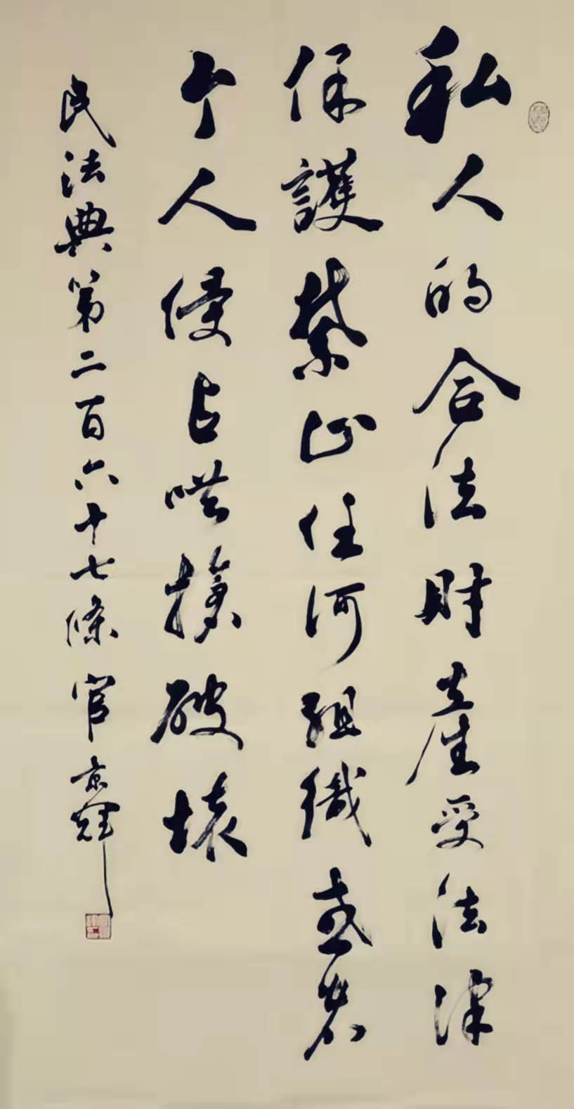 民法典第二百六十七條 私人的合法財產(chǎn)受法律保護,禁止任何組織或者個人侵占、哄搶、破壞。