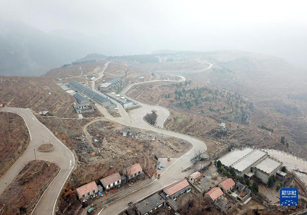 這是在山東省平邑縣地方鎮(zhèn)九間棚村拍攝的道路設(shè)施(2018年12月2日攝,無(wú)人機(jī)照片)。新華社記者 王凱 攝