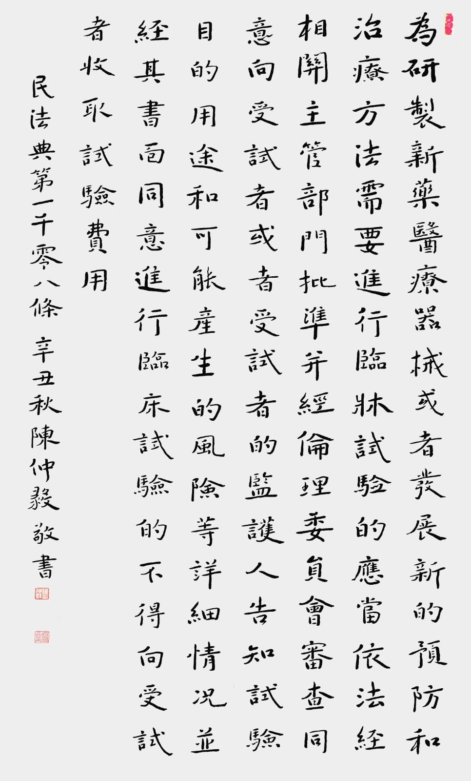 民法典第一千零八條 為研制新藥、醫(yī)療器械或者發(fā)展新的預(yù)防和治療方法,需要進(jìn)行臨床試驗(yàn)的,應(yīng)當(dāng)依法經(jīng)相關(guān)主管部門批準(zhǔn)并經(jīng)倫理委員會(huì)審查同意,向受試者或者受試者的監(jiān)護(hù)人告知試驗(yàn)?zāi)康?、用途和可能產(chǎn)生的風(fēng)險(xiǎn)等詳細(xì)情況,并經(jīng)其書(shū)面同意。