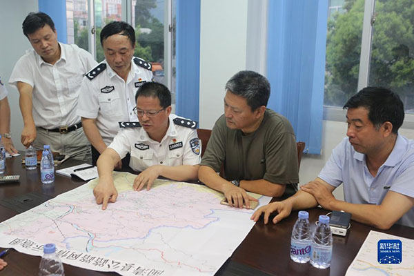 潘東升(中)在閩清指導防抗臺風“尼伯特”(2016年7月12日攝)。新華社發(fā)(福州市公安局供圖)