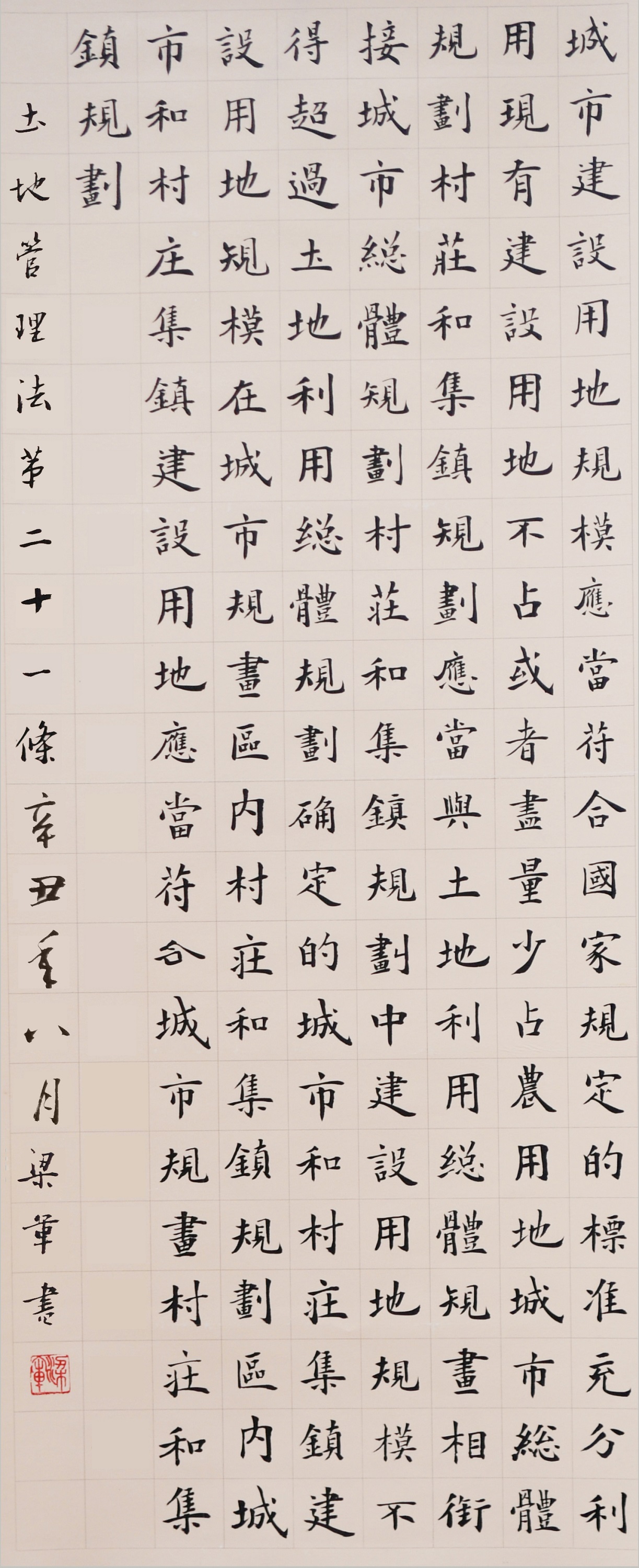 繼1600余位書法家參與書寫《中華人民共和國民法典》全部1260條法條之后,法治日?qǐng)?bào)社聯(lián)合自然資源部法規(guī)司、自然資源部書畫研究會(huì)和北京昌平書法家協(xié)會(huì),將筆端對(duì)準(zhǔn)土地管理“一法一條例”,即《中華人民共和國土地管理法》和《中華人民共和國土地管理法實(shí)施條例》。