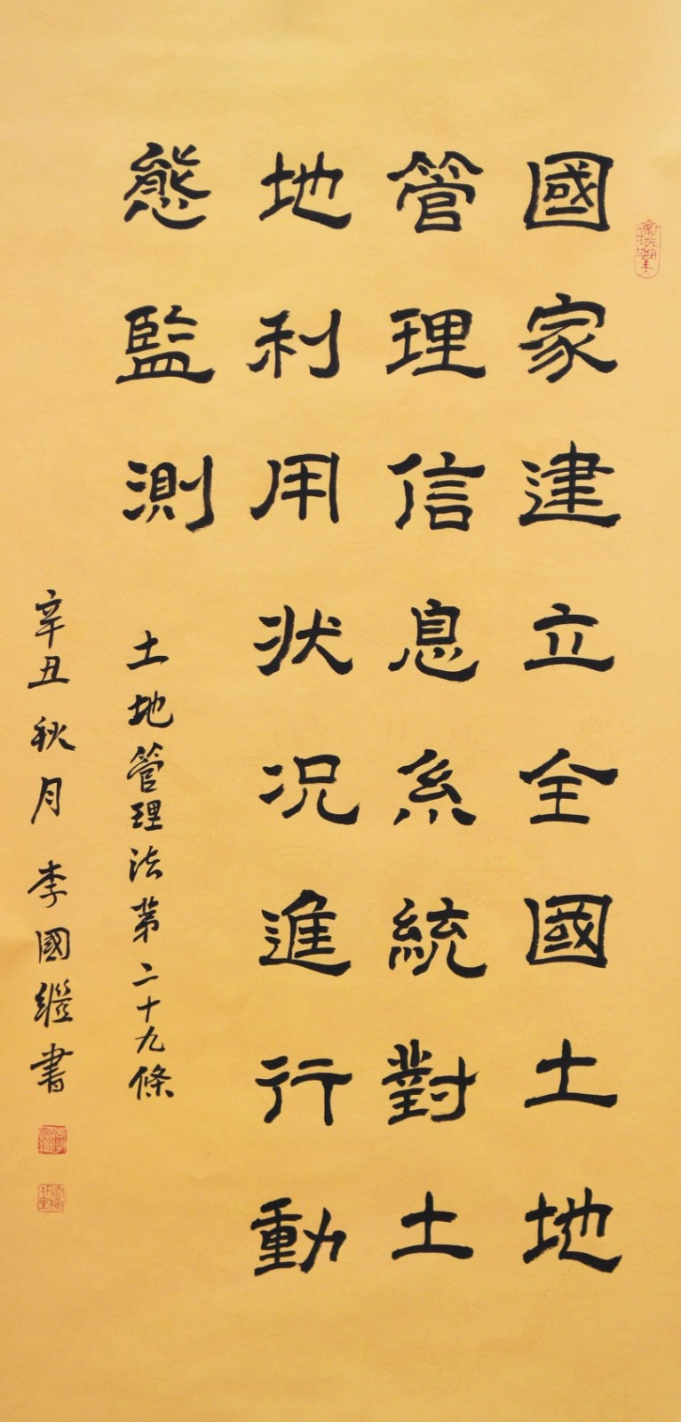 繼1600余位書法家參與書寫《中華人民共和國民法典》全部1260條法條之后,法治日?qǐng)?bào)社聯(lián)合自然資源部法規(guī)司、自然資源部書畫研究會(huì)和北京昌平書法家協(xié)會(huì),將筆端對(duì)準(zhǔn)土地管理“一法一條例”,即《中華人民共和國土地管理法》和《中華人民共和國土地管理法實(shí)施條例》。