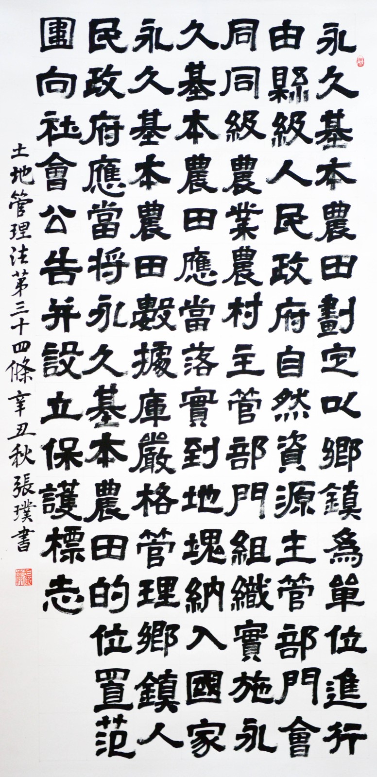 繼1600余位書法家參與書寫《中華人民共和國民法典》全部1260條法條之后,法治日報社聯(lián)合自然資源部法規(guī)司、自然資源部書畫研究會和北京昌平書法家協(xié)會,將筆端對準土地管理“一法一條例”,即《中華人民共和國土地管理法》和《中華人民共和國土地管理法實施條例》。