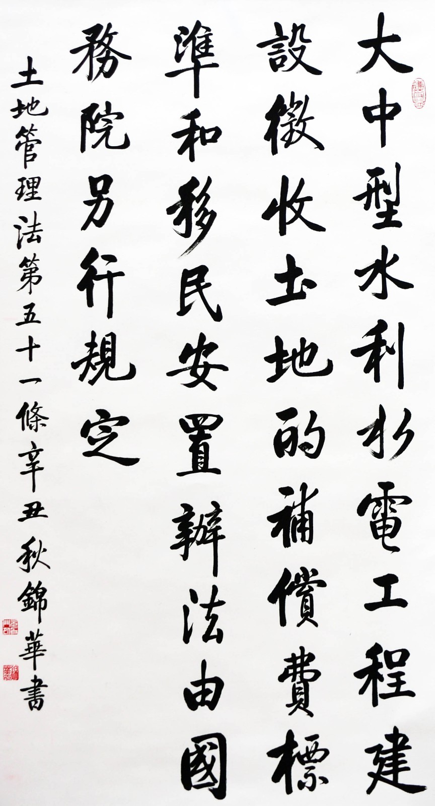 繼1600余位書法家參與書寫《中華人民共和國民法典》全部1260條法條之后,法治日報社聯(lián)合自然資源部法規(guī)司、自然資源部書畫研究會和北京昌平書法家協(xié)會,將筆端對準(zhǔn)土地管理“一法一條例”,即《中華人民共和國土地管理法》和《中華人民共和國土地管理法實施條例》。