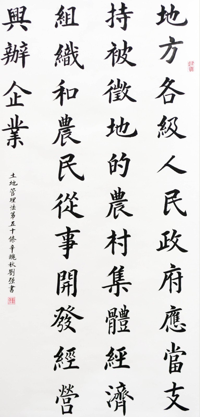 繼1600余位書法家參與書寫《中華人民共和國民法典》全部1260條法條之后,法治日報(bào)社聯(lián)合自然資源部法規(guī)司、自然資源部書畫研究會(huì)和北京昌平書法家協(xié)會(huì),將筆端對準(zhǔn)土地管理“一法一條例”,即《中華人民共和國土地管理法》和《中華人民共和國土地管理法實(shí)施條例》。