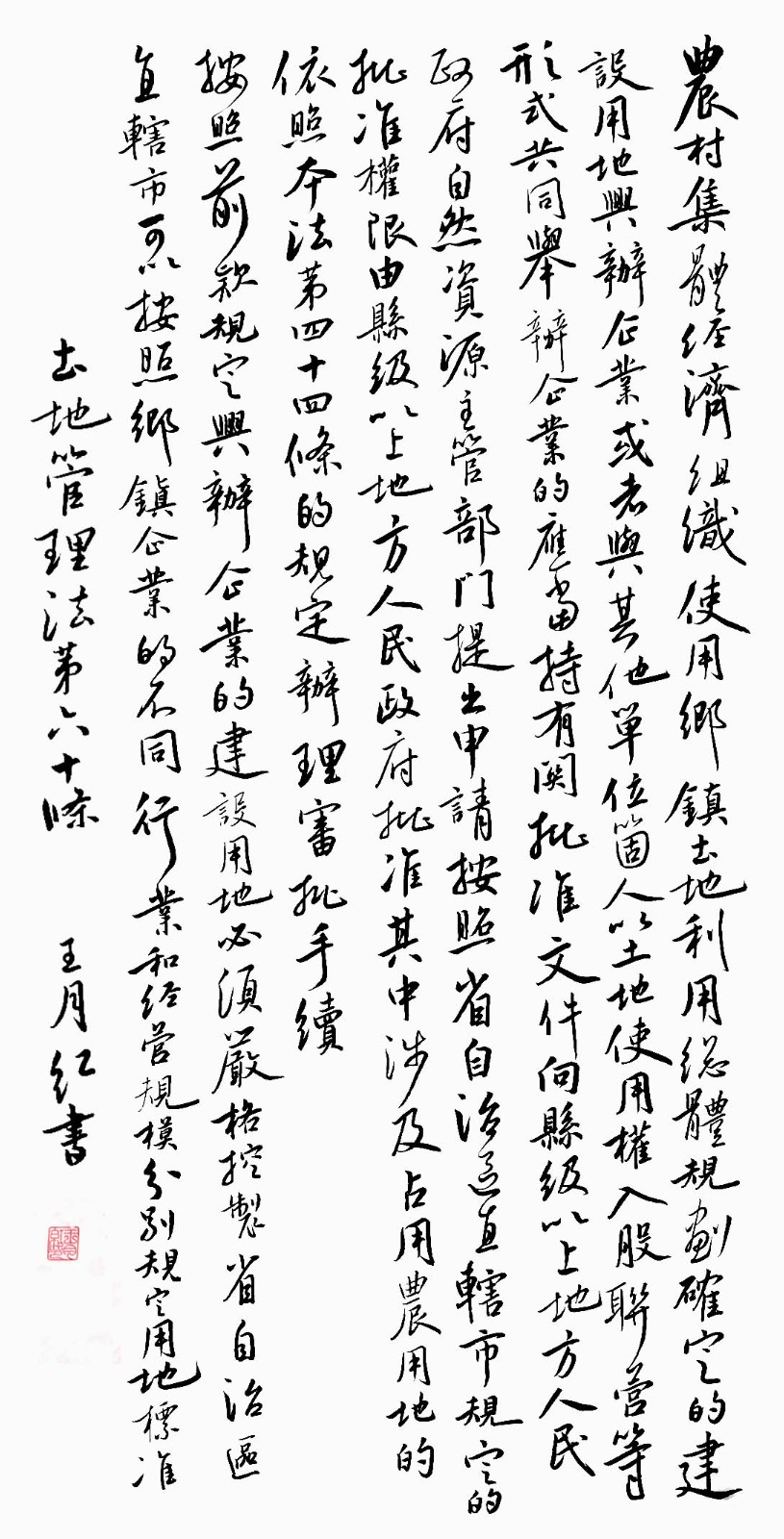 繼1600余位書(shū)法家參與書(shū)寫(xiě)《中華人民共和國(guó)民法典》全部1260條法條之后,法治日?qǐng)?bào)社聯(lián)合自然資源部法規(guī)司、自然資源部書(shū)畫(huà)研究會(huì)和北京昌平書(shū)法家協(xié)會(huì),將筆端對(duì)準(zhǔn)土地管理“一法一條例”,即《中華人民共和國(guó)土地管理法》和《中華人民共和國(guó)土地管理法實(shí)施條例》。