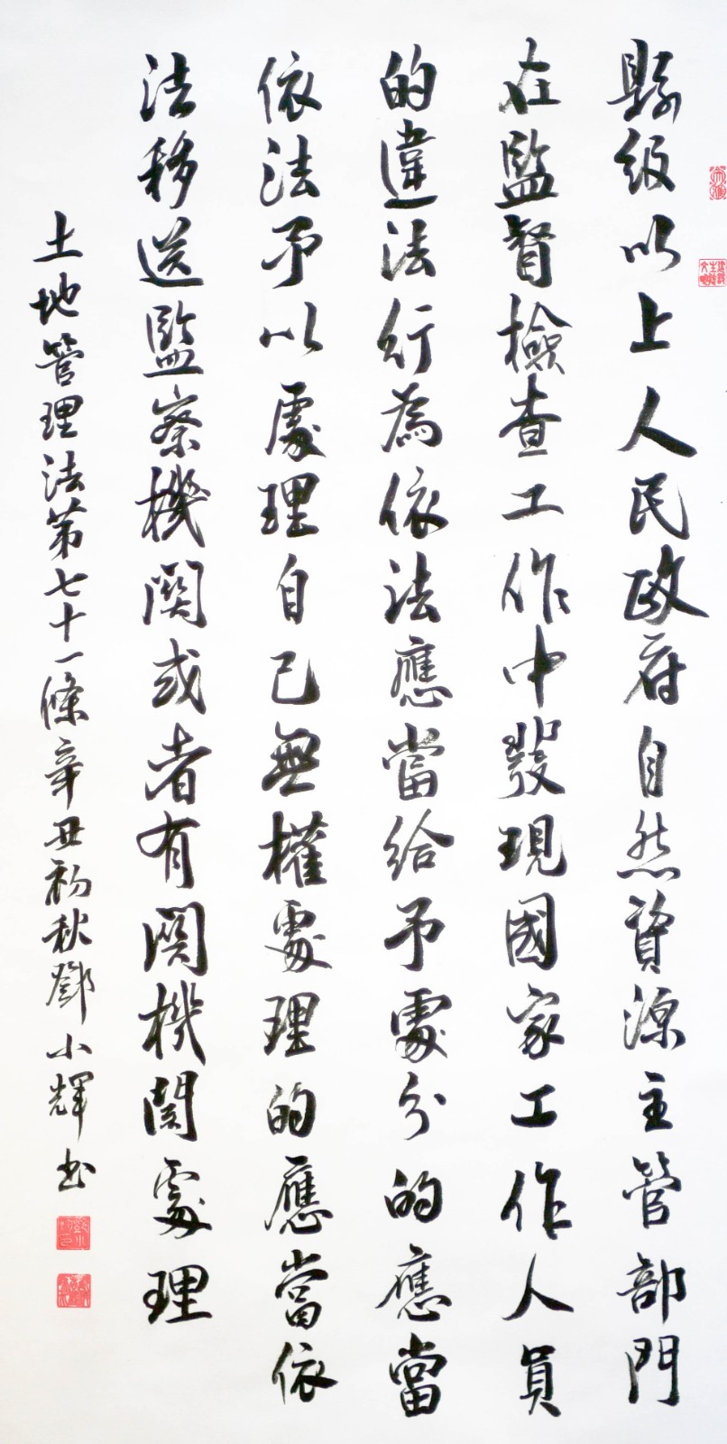 繼1600余位書法家參與書寫《中華人民共和國(guó)民法典》全部1260條法條之后,法治日?qǐng)?bào)社聯(lián)合自然資源部法規(guī)司、自然資源部書畫研究會(huì)和北京昌平書法家協(xié)會(huì),將筆端對(duì)準(zhǔn)土地管理“一法一條例”,即《中華人民共和國(guó)土地管理法》和《中華人民共和國(guó)土地管理法實(shí)施條例》。
