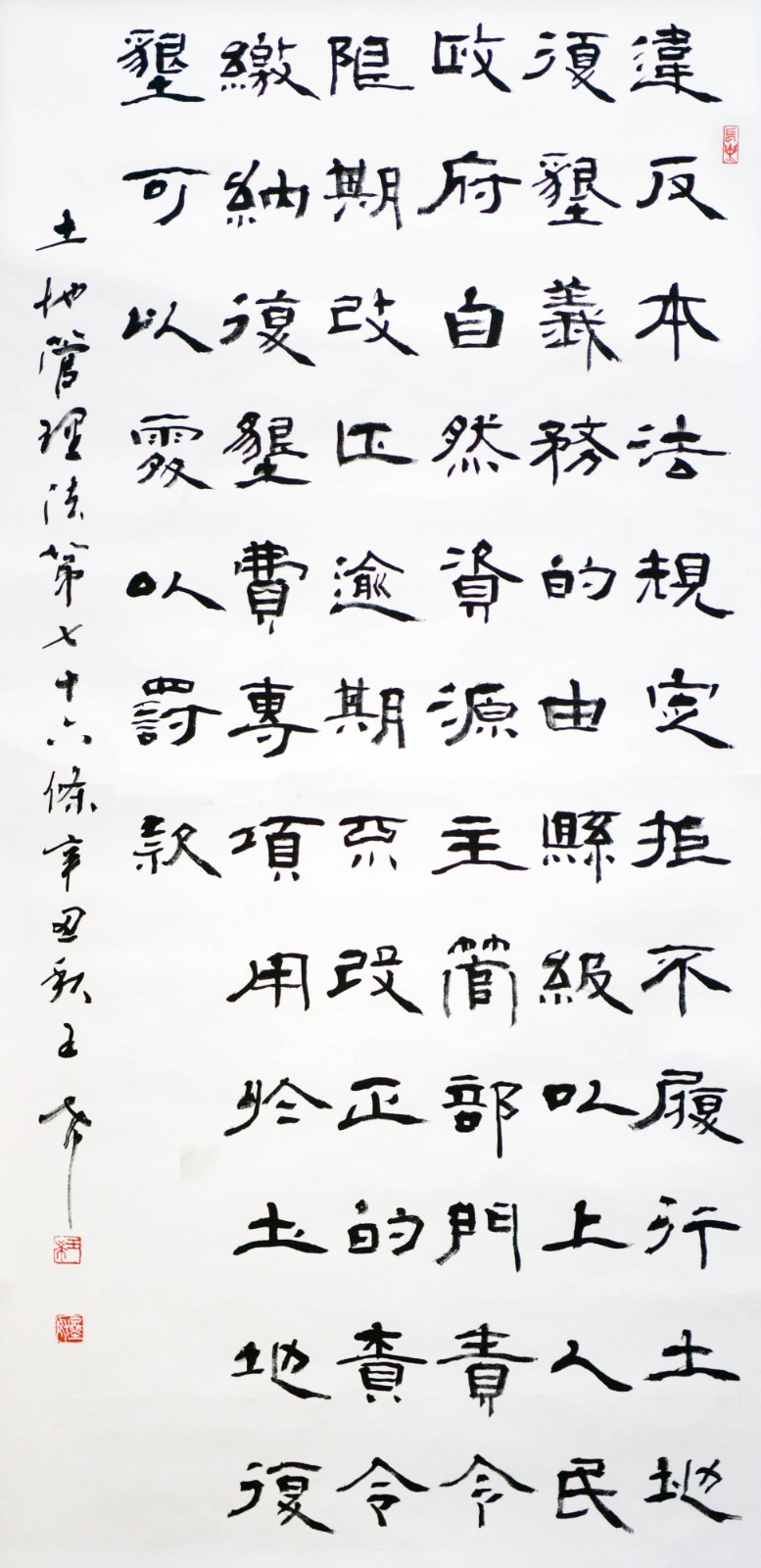 繼1600余位書法家參與書寫《中華人民共和國民法典》全部1260條法條之后,法治日報社聯(lián)合自然資源部法規(guī)司、自然資源部書畫研究會和北京昌平書法家協(xié)會,將筆端對準(zhǔn)土地管理“一法一條例”,即《中華人民共和國土地管理法》和《中華人民共和國土地管理法實(shí)施條例》。