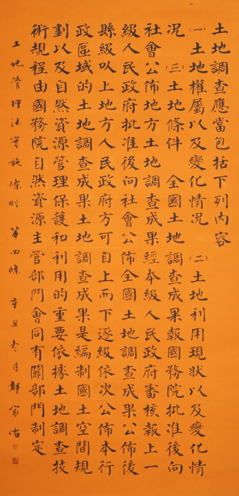 繼1600余位書法家參與書寫《中華人民共和國民法典》全部1260條法條之后,法治日報(bào)社聯(lián)合自然資源部法規(guī)司、自然資源部書畫研究會和北京昌平書法家協(xié)會,將筆端對準(zhǔn)土地管理“一法一條例”,即《中華人民共和國土地管理法》和《中華人民共和國土地管理法實(shí)施條例》。