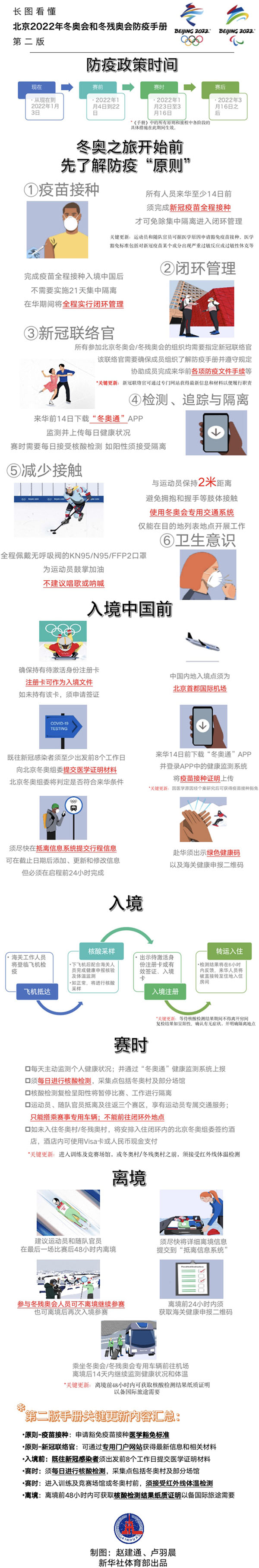 據悉,《防疫手冊》結合了中國的防疫政策,也結合了疫情下舉辦世界大型體育賽事的規(guī)律,從最初確定原則方針,到今年9月30日發(fā)布關鍵性政策,到10月25日發(fā)布第一版《防疫手冊》搭建四梁八柱,再到第二版《防疫手冊》將內容更加細化,整個過程都是在防疫專家指導下,認真研究各方面政策,與國際奧委會等有關各方密切磋商,最后形成的集體智慧。