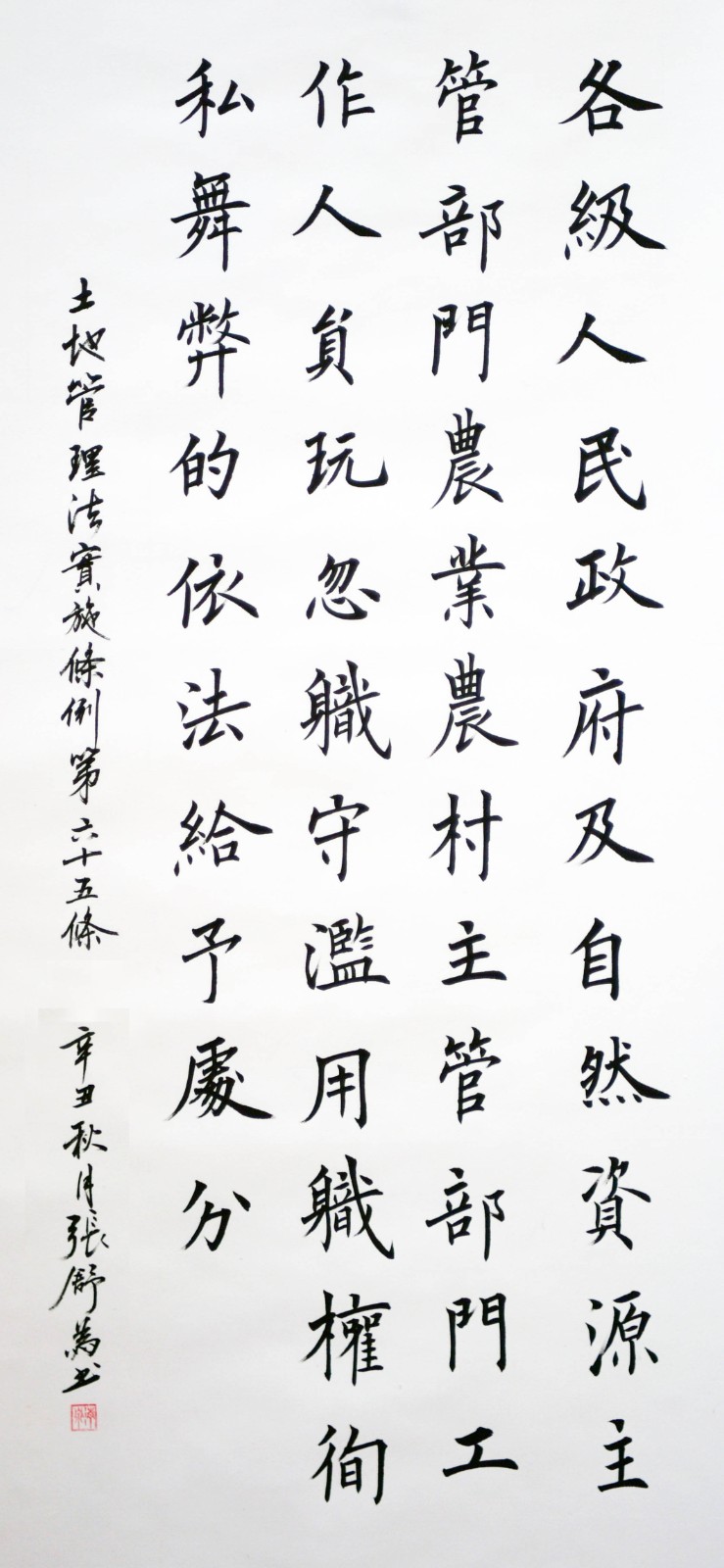 繼1600余位書法家參與書寫《中華人民共和國民法典》全部1260條法條之后,法治日報社聯(lián)合自然資源部法規(guī)司、自然資源部書畫研究會和北京昌平書法家協(xié)會,將筆端對準(zhǔn)土地管理“一法一條例”,即《中華人民共和國土地管理法》和《中華人民共和國土地管理法實施條例》。