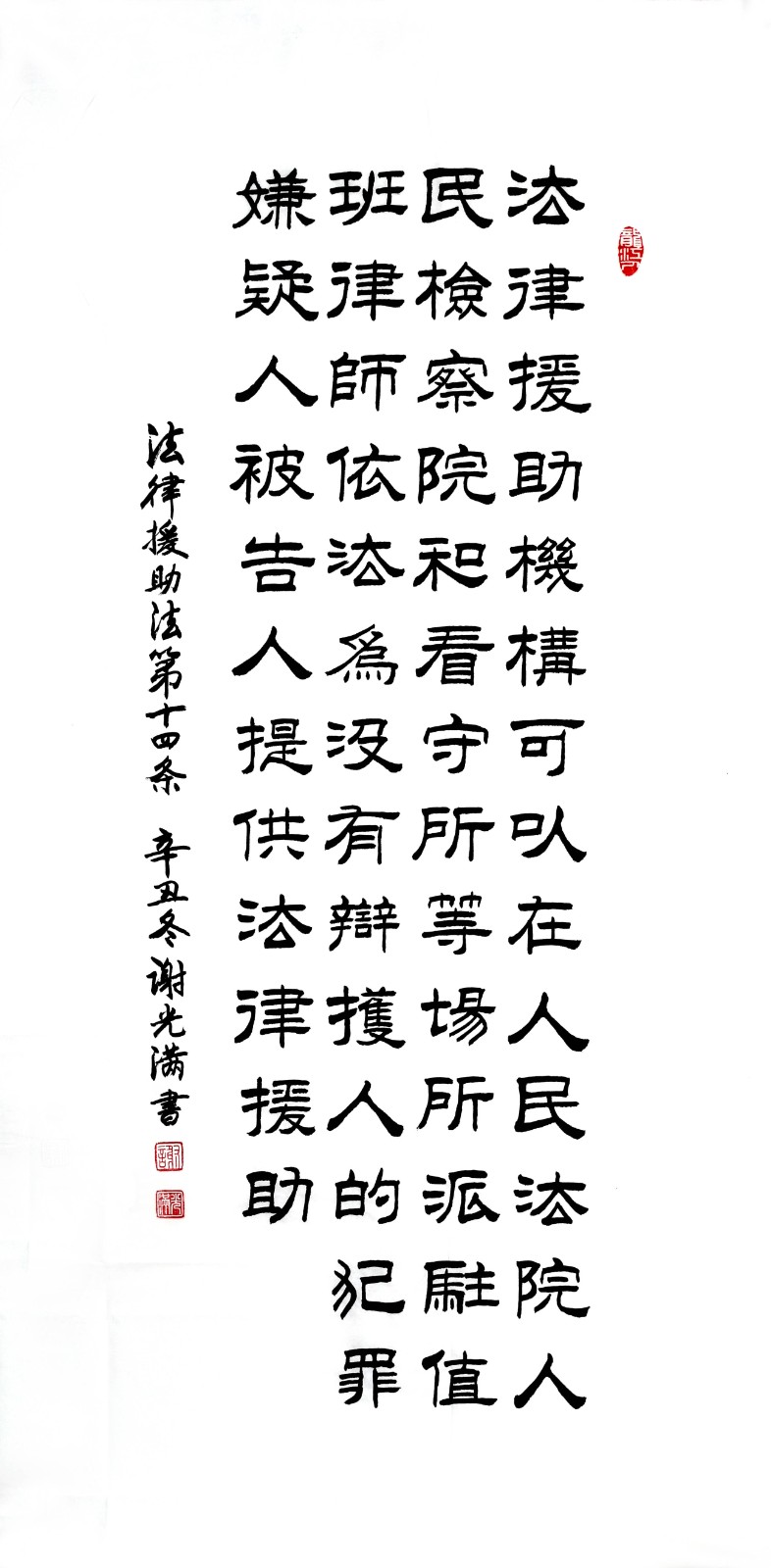 謝光滿,司法部詩(shī)書(shū)畫(huà)協(xié)會(huì)會(huì)員,北京市硬筆書(shū)法協(xié)會(huì)會(huì)員。