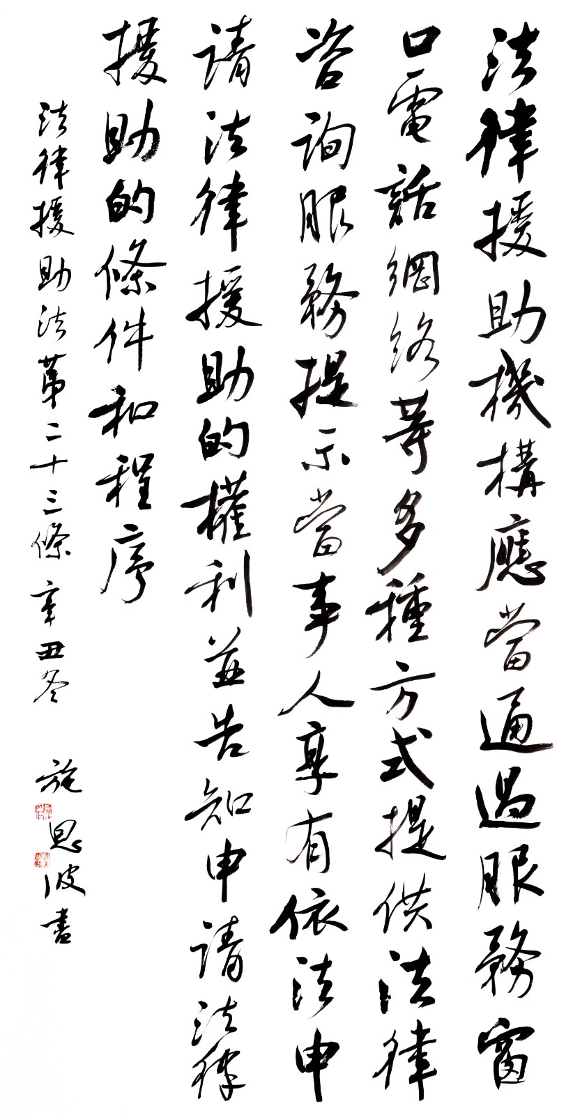 “書·法”活動(dòng)旨在為創(chuàng)新法治宣傳教育,多開(kāi)一點(diǎn)腦洞、多花一點(diǎn)心思、多出一點(diǎn)力量、多做一點(diǎn)貢獻(xiàn),引領(lǐng)和推動(dòng)更多的人拿起筆來(lái)學(xué)法、寫法,在不斷“書·法”過(guò)程中,提升自身的法治素養(yǎng),在全社會(huì)弘揚(yáng)法治精神。