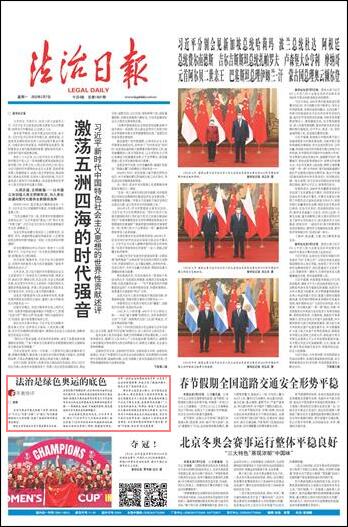 綠水青山就是金山銀山,冰天雪地也是金山銀山。綠色家園是人類的共同夢(mèng)想,生態(tài)文明建設(shè)關(guān)乎人類未來。綠色奧運(yùn)的意義不僅在于綠色辦奧,更重要的是傳播了“人與自然和諧共生”的理念,彰顯了運(yùn)用法治方式推動(dòng)實(shí)現(xiàn)綠色夢(mèng)想的無限潛力,這不僅有利于加強(qiáng)我國生態(tài)文明法治建設(shè),更有利于我們與世界各國一道踐行人類命運(yùn)共同體理念,為全球環(huán)境治理貢獻(xiàn)中國方案,實(shí)現(xiàn)“可持續(xù)、向未來”的發(fā)展愿景。