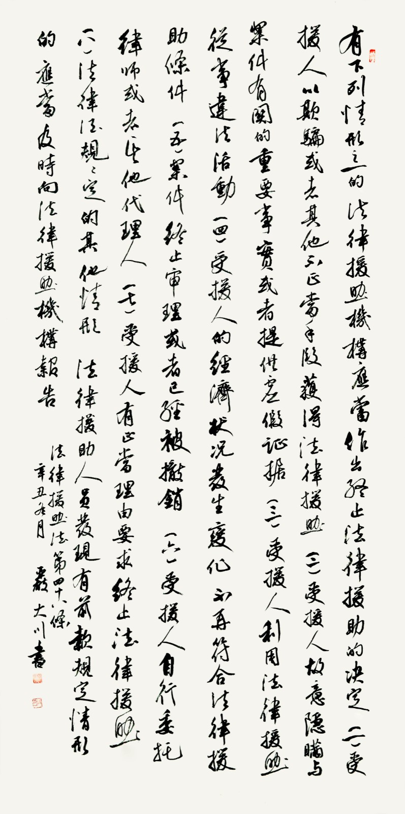 法律援助法第四十八條 有下列情形之一的,法律援助機構(gòu)應(yīng)當作出終止法律援助的決定:
