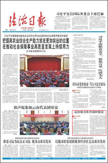 體育強則中國強,全民健身是由體育大國向體育強國邁進的重要組成部分。期待全社會都行動起來,以北京冬奧會、北京冬殘奧會的舉辦為契機,在法治的軌道上推進全民健身場地設(shè)施建設(shè),為體育強國貢獻法治力量。